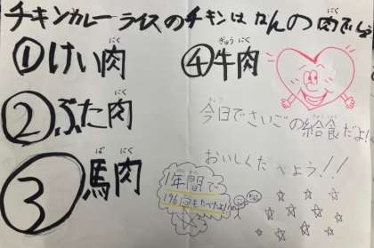 【問題】チキンカレーライスのチキンは、何の肉でしょう。
