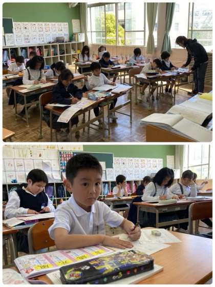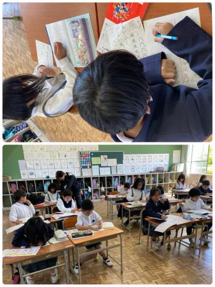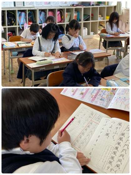2年生は国語で、新しい漢字を学習しました。とめ・はね・はらいに注意して、筆順に気をつけながら書いていきました。