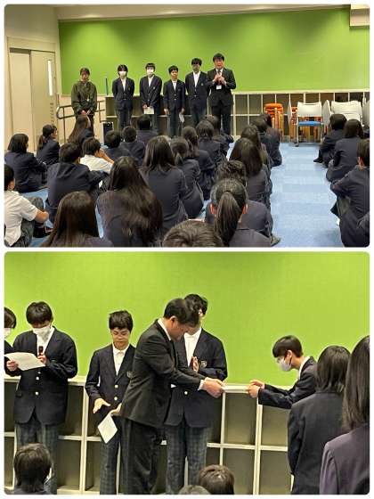 前期の生徒委員会の認証式が行われ、それぞれの委員会の代表が認証状を受け取りました。これから本格的に学校生活のなかでの委員会活動が始まります。