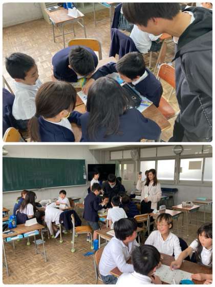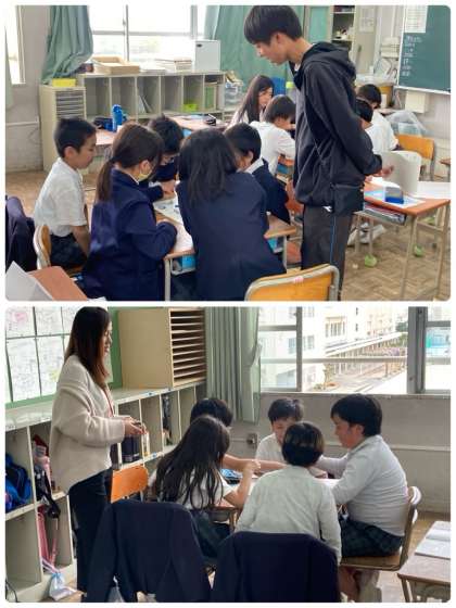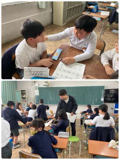 4年生は外国語活動で、中学部の英語の先生と、C-NET(外国人英語講師)の先生と、楽しく学習しています。