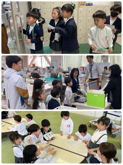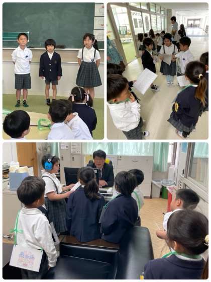 先日、2年生が1年生を連れて、校内を案内してまわる学校探検をしました。校長室や職員室など、なかなか入れない場所にも入ることができ、お互いに刺激を受けながら交流できました。