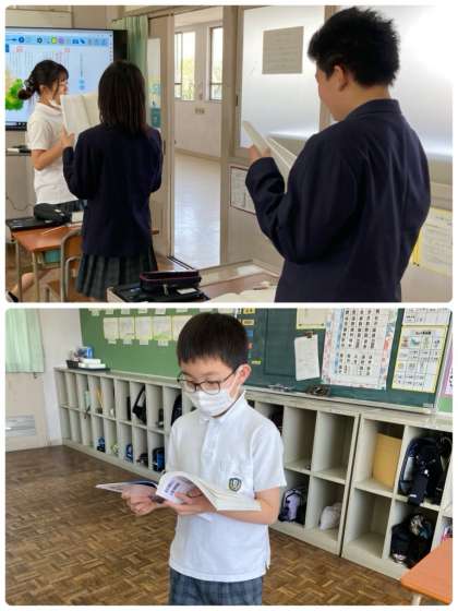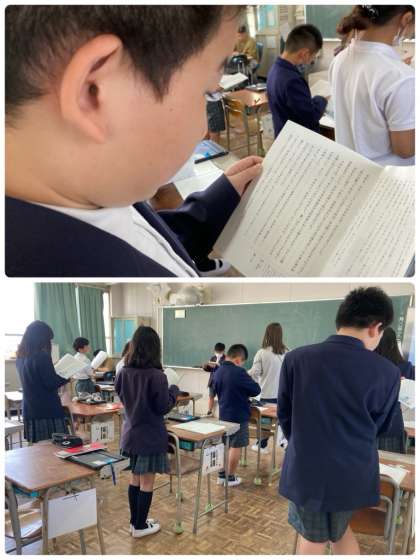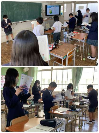6年生は国語で、さなぎたちの教室の学習をしました。音読をしっかりして、読み進めています。