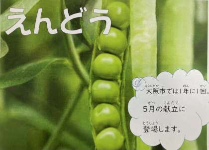 今日の献立は「さけのごまみそ焼き、五目汁、えんんどうの卵とじ、ごはん、牛乳」でした。えんどうは和歌山県産の【うすい豌豆】が届いていました。うすいといえばえんどうの代名詞。うすい豌豆は、羽曳野市碓井地区で明治時代から栽培されている野菜です。平成20年に17番目の「なにわの伝統野菜」として認定されました。