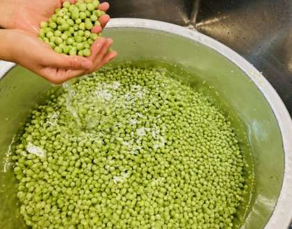 一般的にグリンピースと呼ばれている種類の豆ですが、冷凍や缶づめとは違い、関西では豆ごはんや卵とじなど、様々な料理に使える春野菜として親しまれています。4月下旬から5月下旬が旬です。
