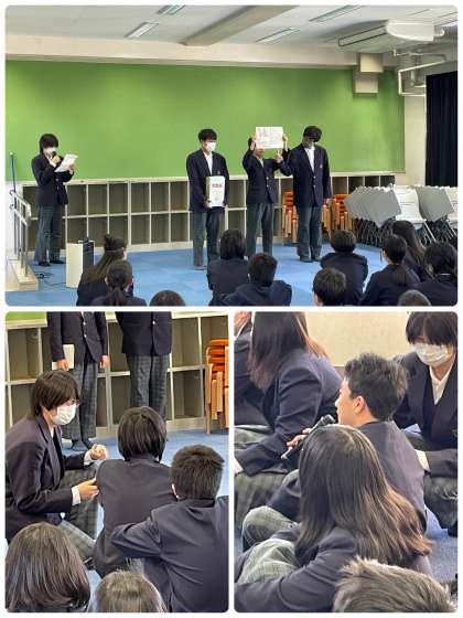 今週は、いじめ(命)について考える日がありました。中学校集会では生徒会から、いじめをなくすにはどうしたらいいのか伝わりやすいよう寸劇を交えて話がありました。
