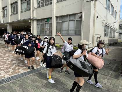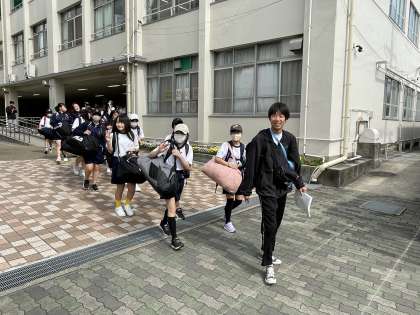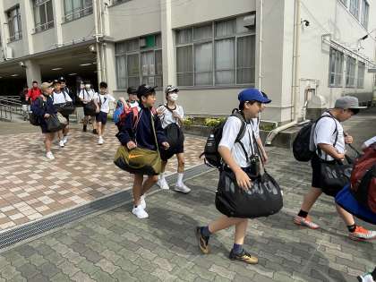 7年生は今日から一泊移住です。天気にも恵まれ、淡輪に向けて無事出発しました。