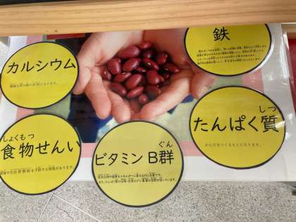 昔は、もち米を蒸した飯を「強飯(こわいい)」といいました。それに、ていねい語の「お」をつけて短くし、「おこわ」になったといわれています。また、現在のうるち米を炊いた米飯は、やわらかいご飯という意味で「姫飯(ひめいい)」と呼ばれていました。今日は、焼き豚、金時豆、しめじの入った「金時豆の中華おこわ」です。おこわには、独特のもちもちとした食感と甘みがあります。