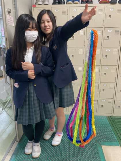 いよいよ9年生の修学旅行です。全校児童生徒で作った千羽鶴をしっかり持ち、思いを背負って広島へ行ってきます。