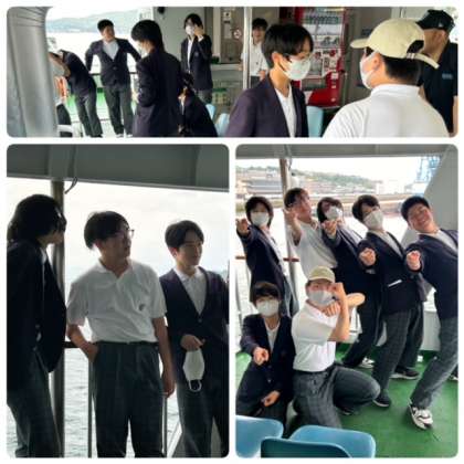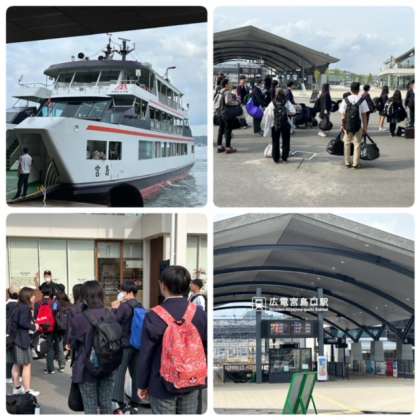 明日が雨予報のため、このあと厳島神社で集合写真を撮ります。