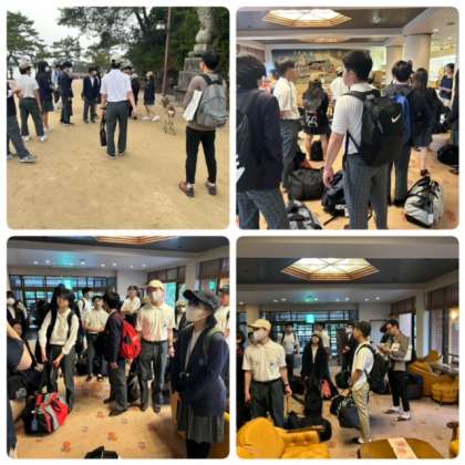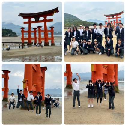 宮島に到着後、厳島神社で集合写真を撮り、ホテルに移動しました。