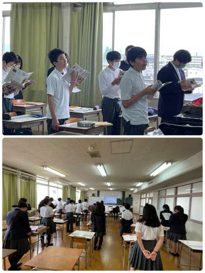 8年生の音楽の授業の様子です。歌唱の練習をしているところです。よく声が出ていて、音程も取れています。