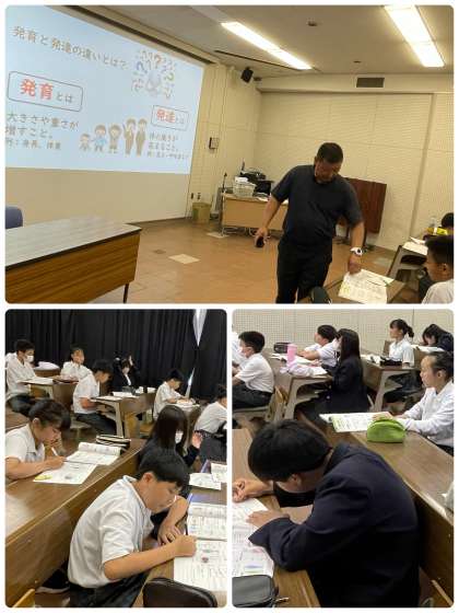 保健の授業に取り組んでいる様子です。内臓の名前、機能、体の発育、発達について学んでいます。