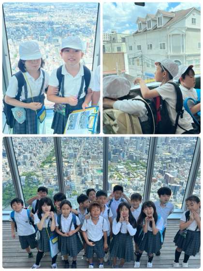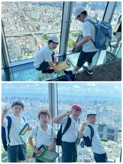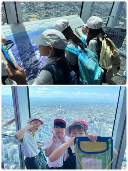 3年生は社会見学で、あべのハルカスに上りました。これまでに習った大阪市内の様子を、東西南北の方角を確認しながら確かめました。天候にも恵まれ、大阪城や生駒山、大阪湾までしっかりと見ることができました。