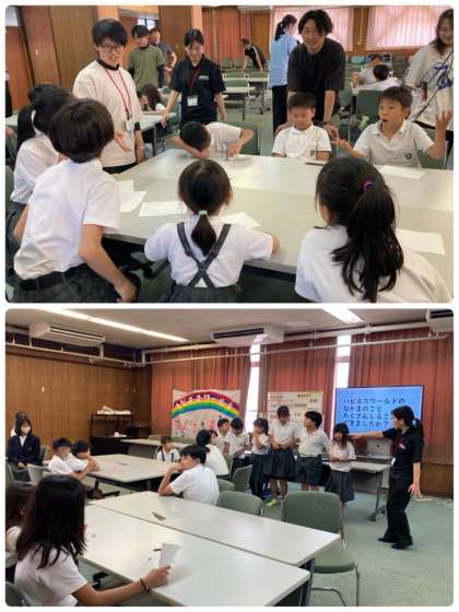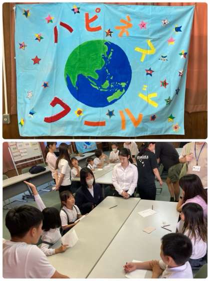 外国につながりを持つ児童生徒が、自分のルーツに対して自信と誇りを持てるような取り組みをを行っていく「ハピネスワールド」の今年度1回目の活動がありました。今回は、自己紹介カードを作って、お互いにクイズを出し合いました。