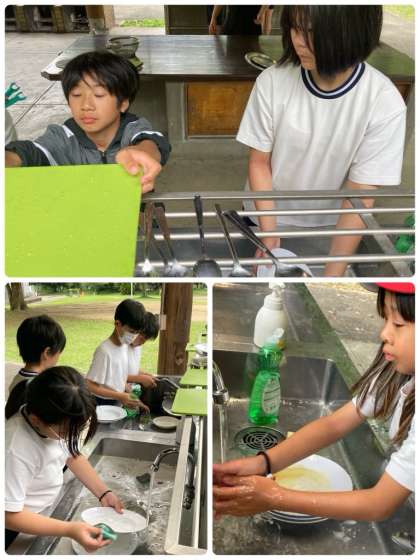 ごちそうさまの後は、片付けも協力してがんばりました。
