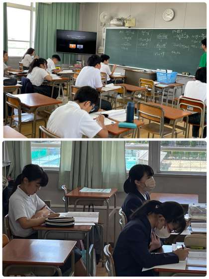 7年生は数学で、文字を使った式の解き方を学んでいます。これまでに習ったものに加え、分配法則など新しい解き方も学習しました。