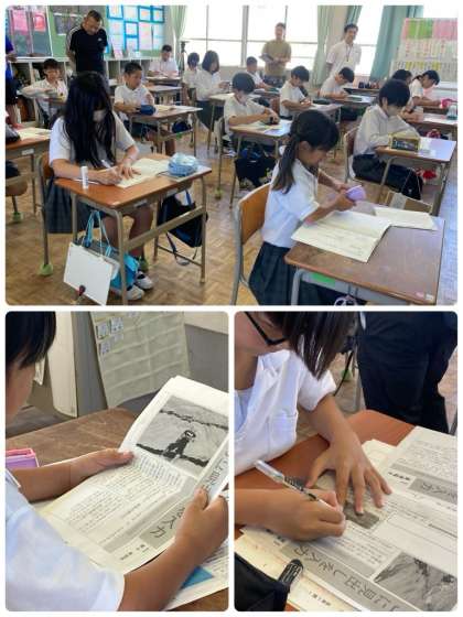 5年生は国語の学習で、新聞記事の読み比べをしています。書き手が、記事の内容や見出し、写真に、どのような意図を込めているのかを考えることができました。