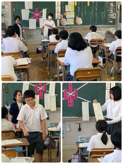 友達の新聞記事の見出しについて、アドバイスし合い、考えていきました。書き手の意図が伝わる見出しか、読み手が引き付けられる見出しかなど、考えを深めて見出しを決定していきました。
