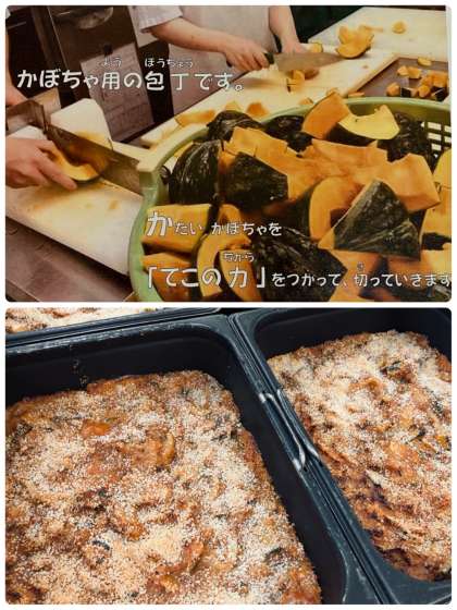 今日の給食は「かぼちゃのミートグラタン、鶏肉と野菜のスープ、冷凍みかん、黒糖パン、牛乳」でした。かぼちゃは、西洋かぼちゃ、日本かぼちゃ、ペポカボチャの3種類に分けられます。日本でよく食べられているのは、西洋かぼちゃという種類です。