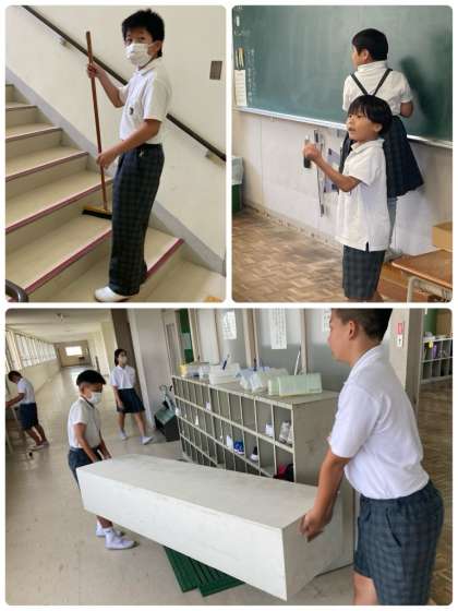 1学期の最後に、みんなで校内の大清掃をしました。普段気が付かないような場所まで、ピカピカにしていきました。奉仕活動を通して、心もピカピカになったのではないでしょうか。