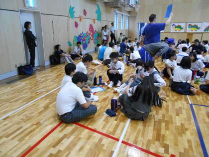 本日、中之島小中一貫校で「イングリッシュ・デイ」が行われました。本校の児童生徒も参加しました。C-NET(外国人英語講師)の先生たちが、様々な活動を用意してくれていました。