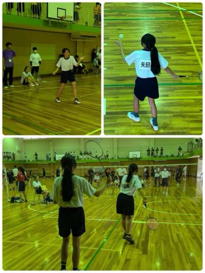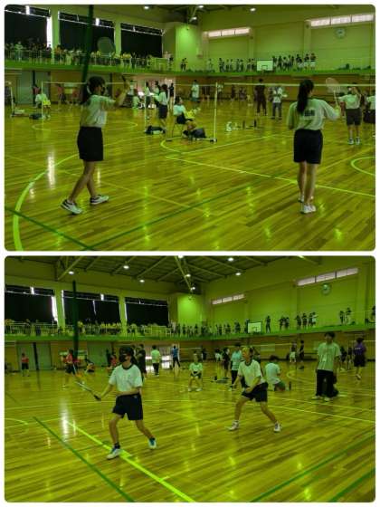 バドミントン部は、本校の体育館で開催された大阪市の第四支部の大会にのぞみました。シングルスとダブルスで出場しました。チームで声をかけ合いながら、最後まであきらめず試合にのぞむことができました。