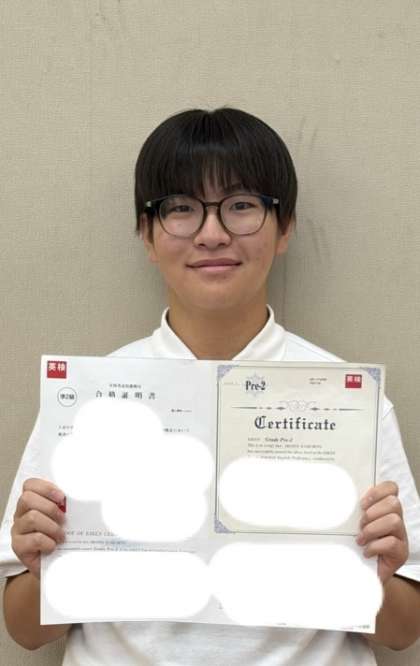 中学生で準2級に合格することは困難なことですが、英語に触れる機会を積極的に持つことで、彼の後に続いて合格へ一歩ずつ近づいていけるはずです!皆さんも日々の英語学習を大切にしながら、合格への強い希望を持って挑戦してみましょう!