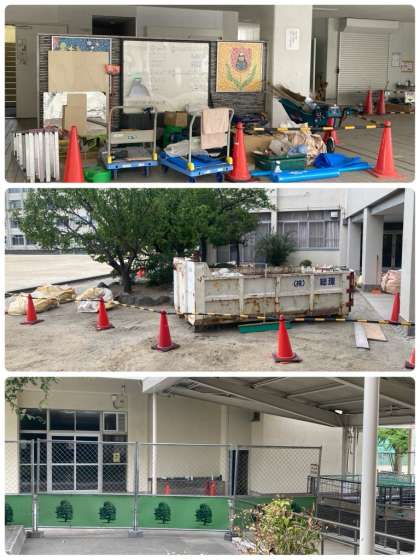 新しいトイレができ上がるまで、少し離れた場所を利用することになる学年には不便をかけます。完成まで、もうしばらくお待ちください。