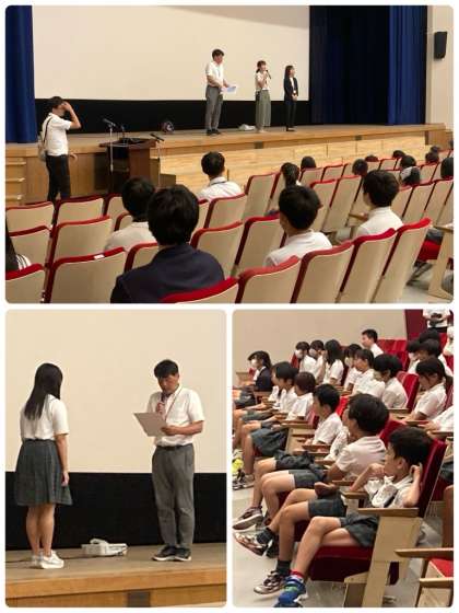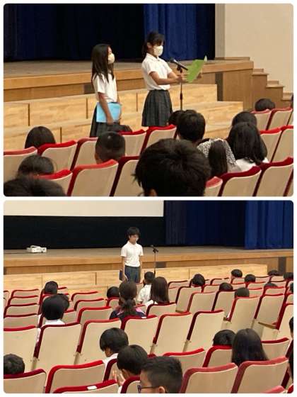 代表スピーチは5年生でした。自分を見つめて、2学期にがんばりたいことをしっかりと伝えてくれました。たくさんの行事がある2学期です。目標をたて、日々こつこつとやるべきことに取り組んでいってほしいと思います。