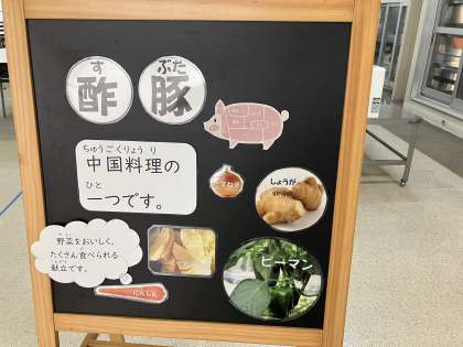 中国では地域によって材料や味つけに違いがあり、豚肉と野菜を使ったものや、パインアップルを使ったものなどがあります。9/6の給食では、たまねぎ、たけのこ、ピーマンを使いました。