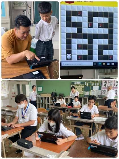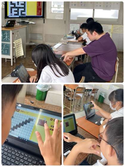 6年生は、プログラミング的思考を養うツールを使って練習しました。どうしてもゴールまでたどり着けない時、どのように発想を変えればうまくいくのか、じっくり考えていきました。難問をクリアした時の、清々しい表情が印象に残っています。