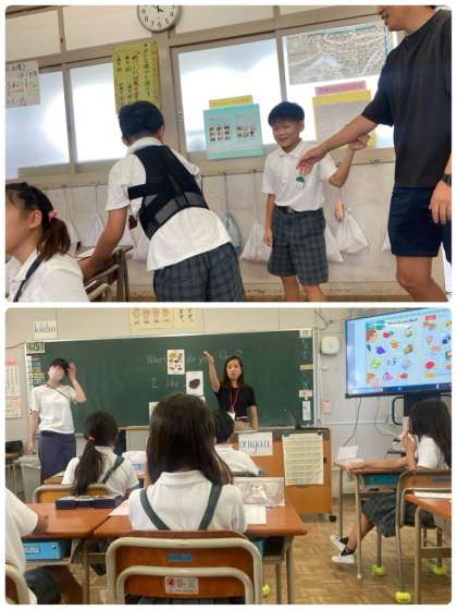 3年生は外国語活動で、C-NET(外国人英語講師)、中学部の英語科の先生、3年生の先生で、楽しく学習を進めています。この日は、友達や先生に、好きなものをたずねていきました。ゲームやチャンツも織り交ぜながら、工夫した授業を教員チームで考えています。