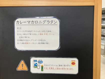 今日のグラタンには、調理工程の中で牛乳・乳製品、小麦粉の使用があります。