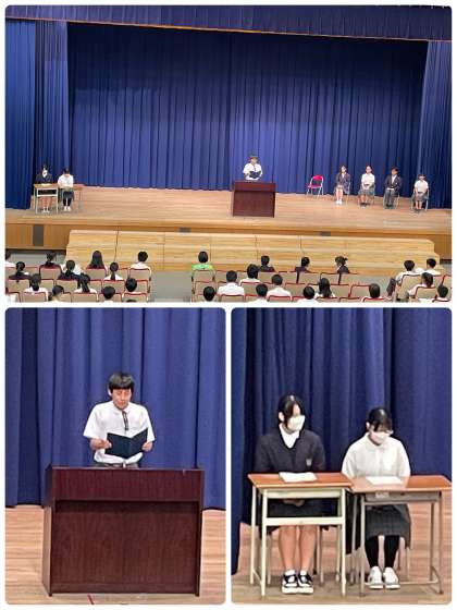 中学部では本日、後期の生徒会役員を選ぶ選挙が行われました。演説会では、立候補した生徒たちが堂々とそれぞれの思い、意気込みを中学生の仲間たちの前で語りました。