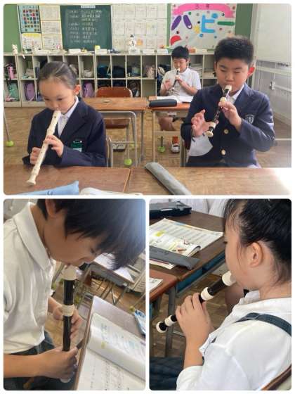 3年生は、音楽で「小さな世界」を歌いました。元気な歌声が響き渡っています。リコーダーは、少しずつ新しい音階を覚えていき、いろいろな曲の演奏ができています。