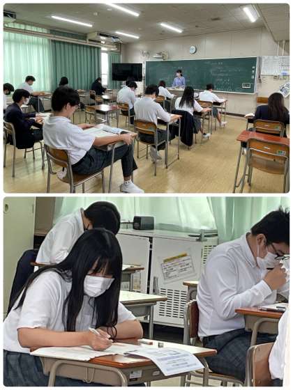 9年生は3時間に渡り、英語の学習到達度を測るテストに挑みました。リーディング、ライティング、リスニングという普段からなじみのあるテストに加え、スピーキングのテストにも挑戦しました。