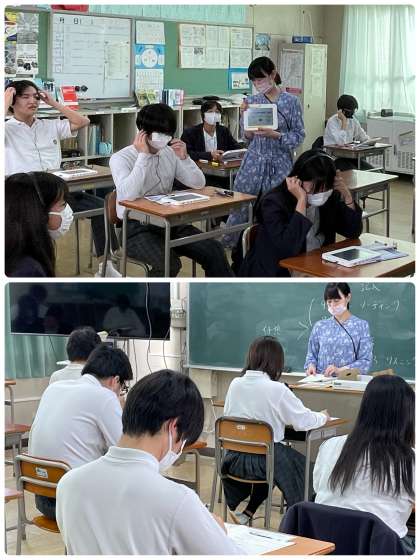 タブレットとヘッドセットを使い、慣れないながらも、問題に対して口頭で回答することができていました。