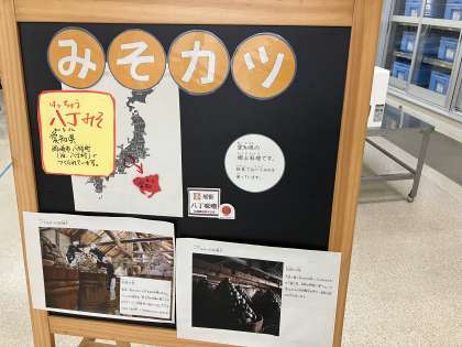 適当な温度に長時間置いて変化させることによって色が変わり、白みそや赤みそなどのちがいができます。今日はみそカツに八丁みそを使いました。