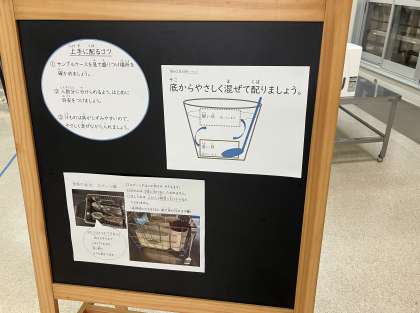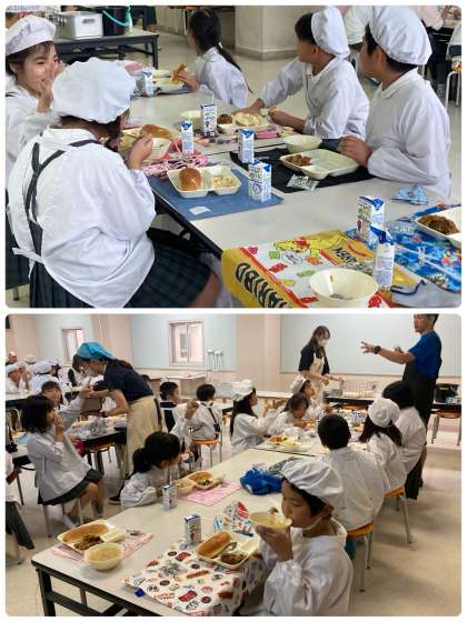 ●後かたづけはクラス全員で協力し、食器に食べ残しがないかを確かめて、決まったところに返しましょう。