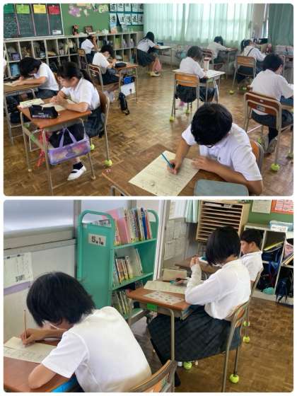 5年生のテストの様子です。2学期も折り返し地点に近づき、各学年の学習内容も進んでいっています。確実に理解して次の単元に進めるよう、まとめのテストで自分の現在の学習状況の把握をして、復習していきましょう。