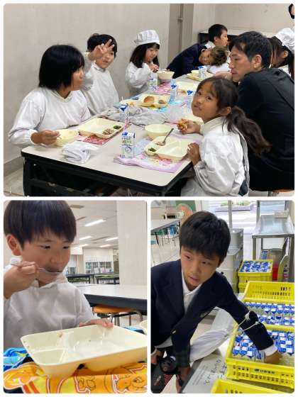 今日の献立は「豚肉のガーリック焼き、鶏肉と野菜のスープ、さんどまめとコーンのソテー、黒糖パン、牛乳」でした。