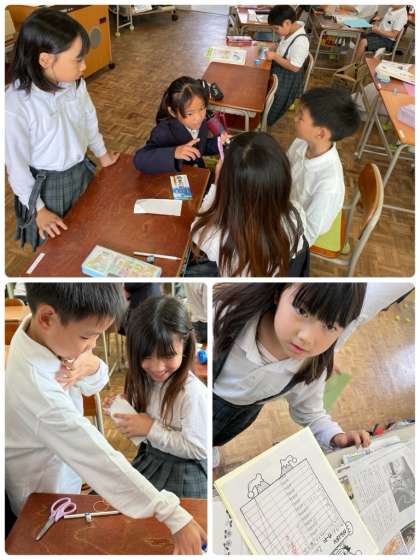 2年生は算数で、かけ算の学習をしています。九九をどんな時に使えば便利なのかを考えながら、学習を進めています。