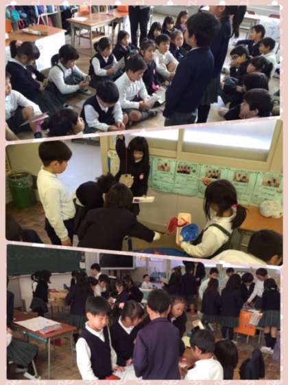 2年生のわくわくフェスティバルに1年生を招待しました。1年生を楽しませるために、スタンプカードや手作りのプレゼントも準備しました。1年生もとても楽しそうで、グループで「次はどのお店に行こうか」と相談していました。2年生は、それぞれのお店ごとに遊びのルール説明をしたり、応援をしたりといつもよりも少しお兄さんお姉さんに見えました。