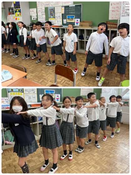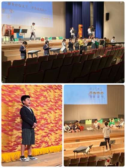3年生の学習発表会のタイトルは、「ハピえもん 〜りく太のハッピーミュージカル〜」です。