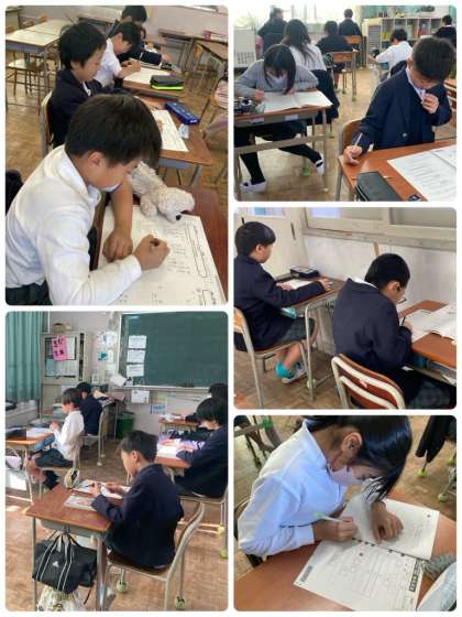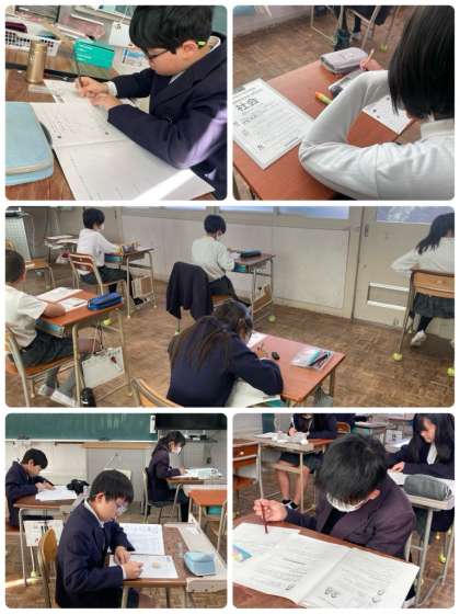 これまで学習してきたことが身についているのか、資料や文章を読み取る力がどの程度ついているのか、確認できたと思います。結果の返却までしばらく時間が空きますが、今後も日々の復習を大切に学習に取り組んでほしいと思います。