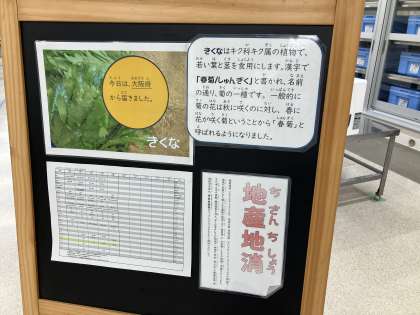 【地産地消(ちさんちしょう)】地域生産・地域消費の略語で、地域で作られた野菜や果物などをその地域で食べたり使ったりすること。また、その考え方や運動。近い場所で作られ運ばれるため、新鮮なものが手に入ります。