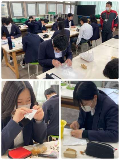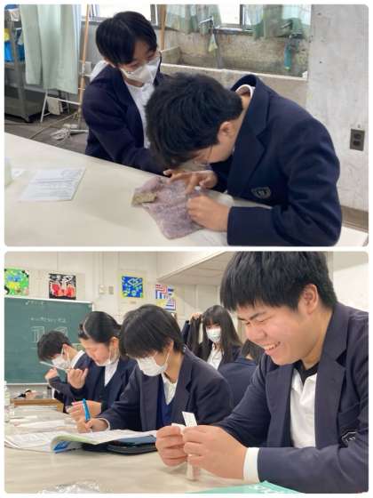 9年生は美術の学習で、篆刻印づくりをしました。細部まで集中して削っていき、世界に一つだけのオリジナルの篆刻印ができ上がりました。