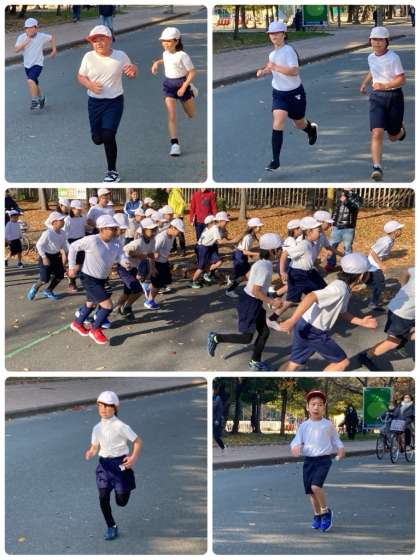 本日、長居公園の外周道路で小学部のマラソン大会を行いました。寒空のもとでしたが、子どもたちは毎日の練習の成果を出し、一生懸命に走りました。ゴールしたあとには、友だちの応援をして、励まし合うこともできました。