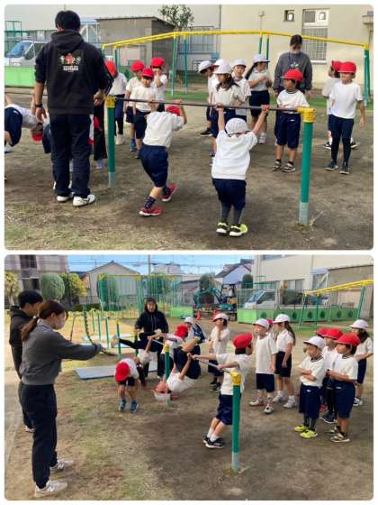 1年生は2学期の後半、体育で鉄棒をしました。基本的な技から、体幹を意識しながらのぞんでいきました。苦手な技も、何度もくり返し練習していく中で、少しずつできるようになっています。