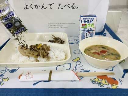 今日の献立は「れんこんのちらしずし、ぞう煮、ごまめ、牛乳」でした。正月には新しい年のはじまりを祝って「今年も健康で幸せに過ごせますように」と願って食べる料理がたくさんあります。